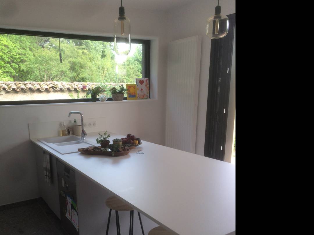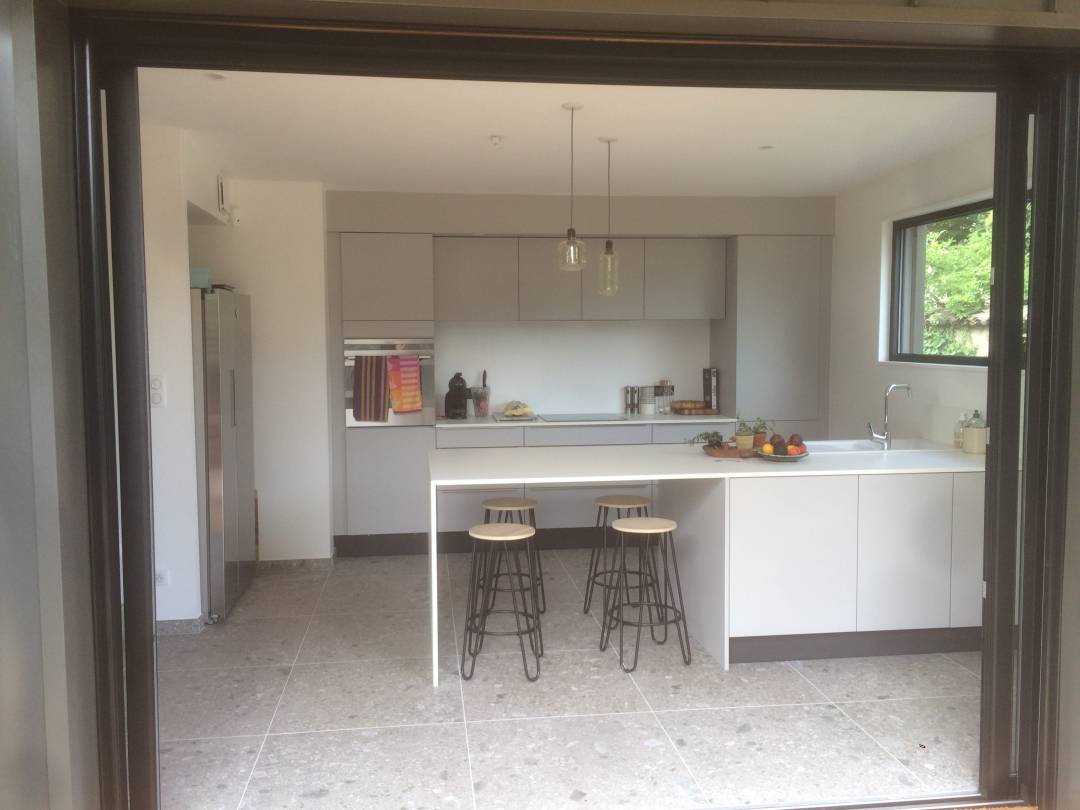 Rénovation d'une cuisine familiale à Bron avec un îlot central.