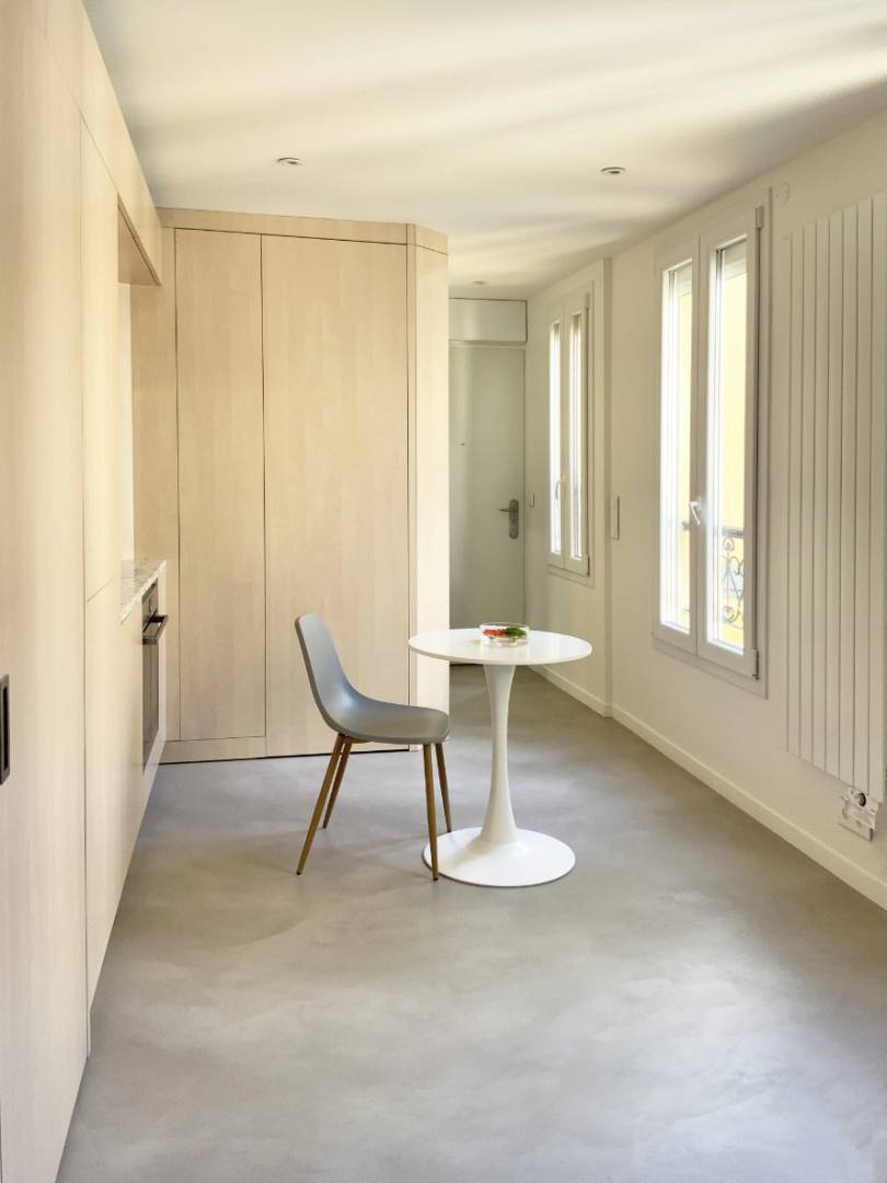 Remise à neuf complète et optimisation d’un studio de de 17 m² à Paris, suite à un incendie