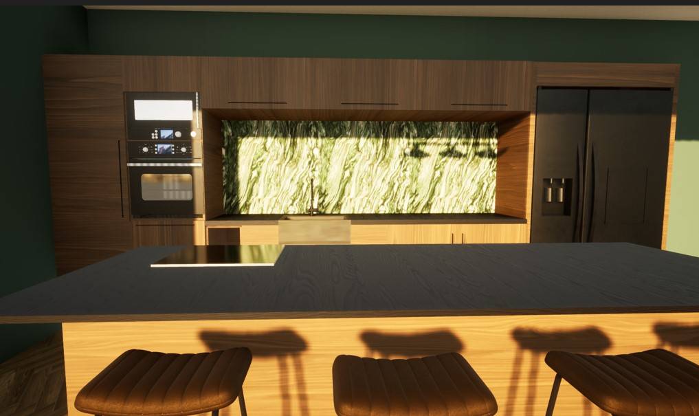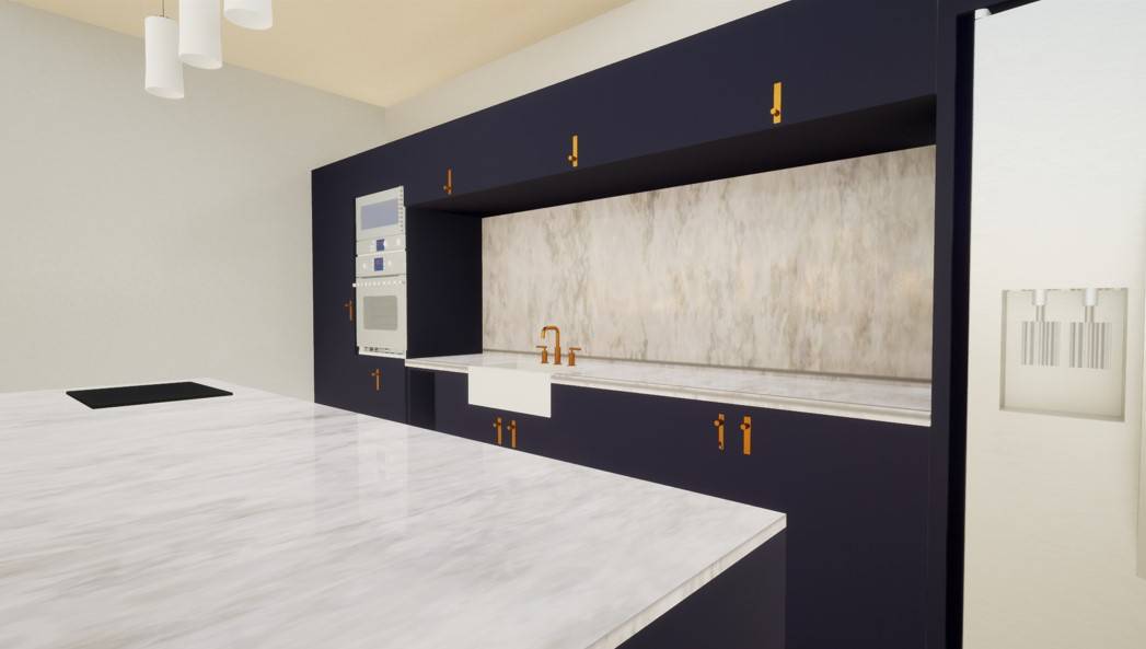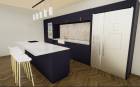Proposition de 2 coloris de cuisine pour un client. Choix des couleurs et des matériaux avec le client. Ce derneir a chois la bleu et marbre avec les poignées en laiton brossé.