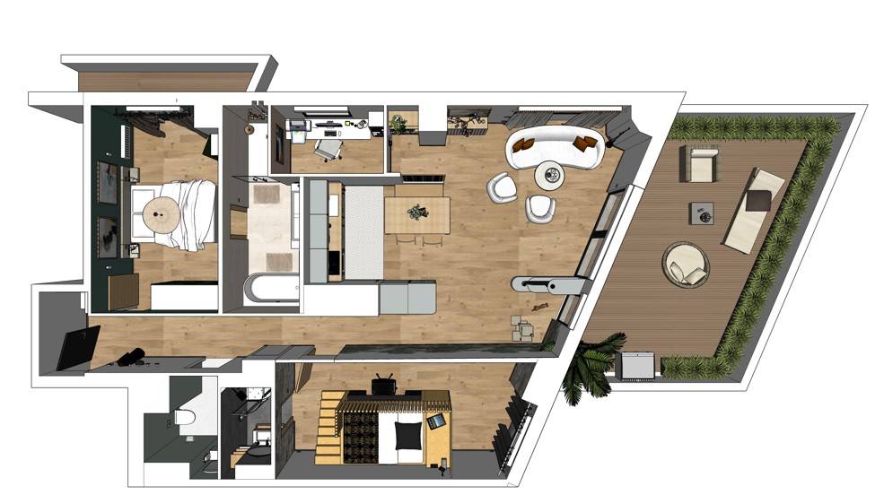 Rénovation complète d'un appartement T3 de 84 m² avec terrasse. Création de mobiliers sur mesure Dossiers complets avec plans techniques