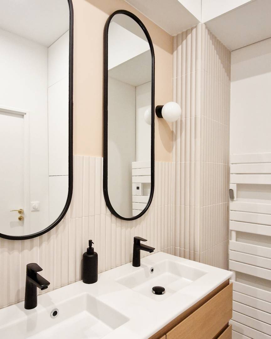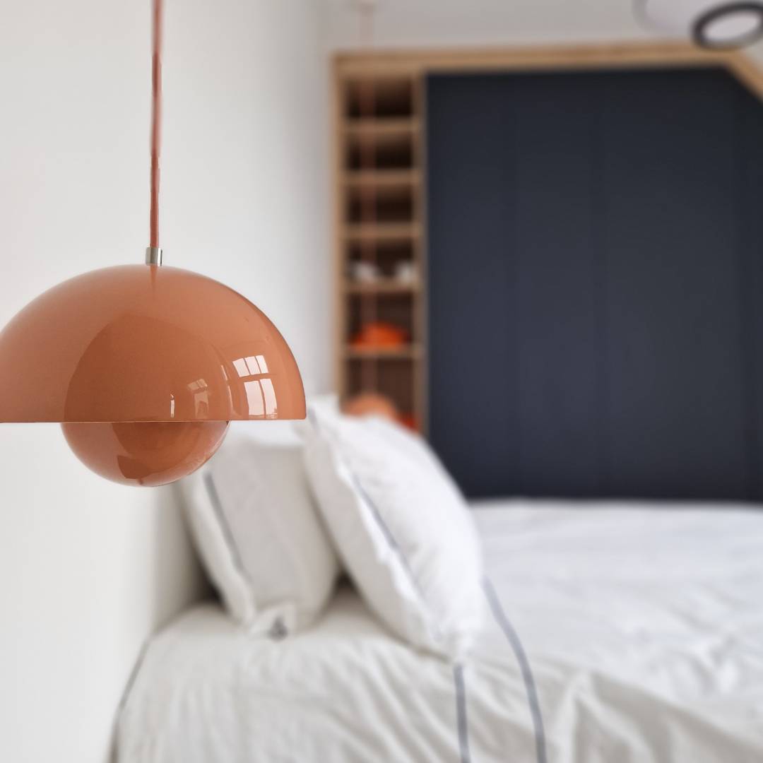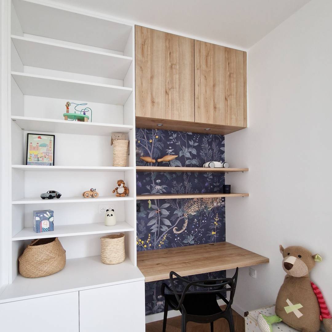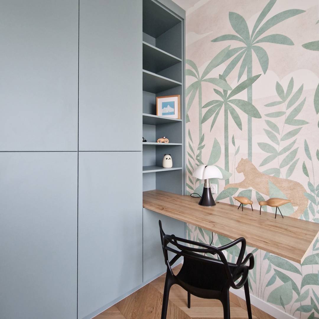 Rénovation totale et réagencement d’un appartement de 95 m². L'intégralité de l'appartement a été repensé et certains espaces ont été redistribués, dont la cuisine qui a été déplacée dans la pièce de vie. Conception des meubles sur-mesure, accompagnement dans le choix des matériaux, revêtements et mobiliers.