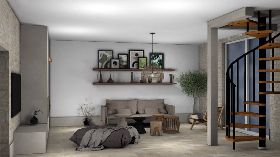 Vues 3D réalisées pour une valorisation immobilière. L'objectif de ce travail: aider des potentiels clients à se projeter dans un espace qui demande des travaux de rafraichissement. Les vues seront présentées par un agent immobilier, lors des visites du bien en vente, et dans l'annonce.