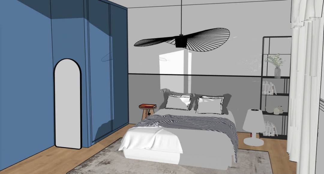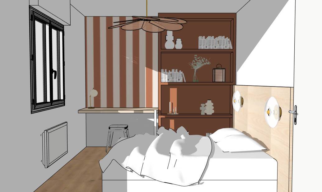 Appartement pour une colocation haut de gamme. Objectif de la partie nuit: réaliser des chambres modernes, avec un univers différent à chaque fois, mais la décoration doit rester intemporelle et mixte ! (projet en cours !)