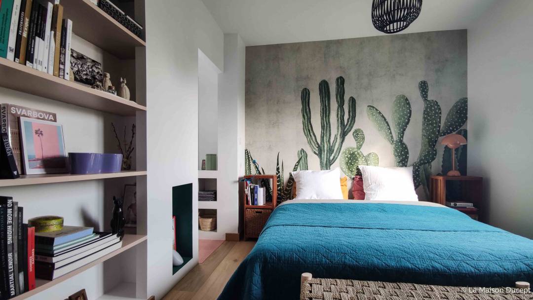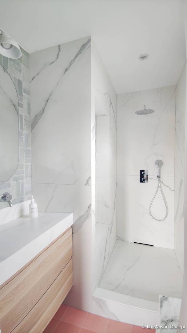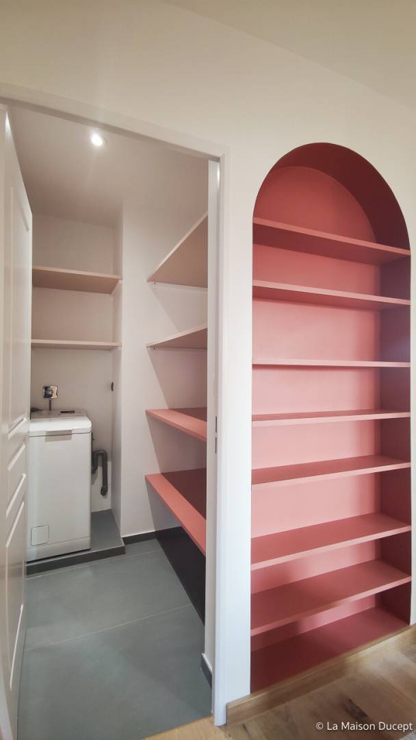 Rénovation complète de l'étage d'une maison d'habitation particulière aux portes du Luberon. Le voyage a constitué une vraie source d'inspiration pour La Maison Ducept qui a transformé espaces en les structurant à partir des besoins de ses nouveaux habitants. Le projet incluait : la modification de l’agencement des pièces pour créer une salle de douche attenante à la chambre parentale, un changement de tous les revêtements, la rénovation de la salle de bain et du WC existants, la création d'une petite buanderie et la rénovation des trois chambres.