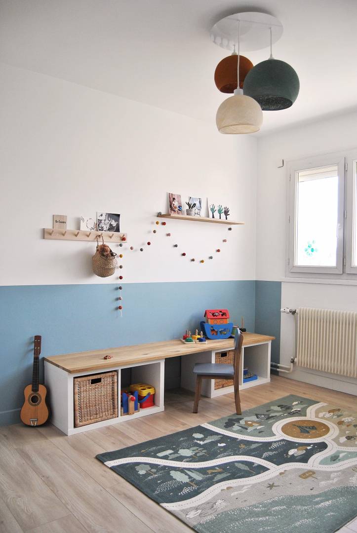 Accompagnement global pour ce projet de rénovation et de décoration d'une maison de 7 pièces et de ses extérieurs (terrasse et jardin). Les clients souhaitaient effectuer les travaux de rénovation avant d'emménager dans leur nouvelle maison. Ils quittaient un appartement de 3 pièces pour cette grande maison et souhaitait de débarrasser de leur ancien mobilier. Il fallait donc remeubler intégralement leur nouveau lieu de vie. Je les ai accompagnés sur leur projet de rénovation, dès l'achat de la maison jusqu'à l'aménagement terminé. La circulation entre certaines pièces a été repensée. Nous avons également modifié certaines ouvertures, créé du rangement sur-mesure dans les chambre et le salon. Nous avons travaillé autour des goûts des propriétaires, de ce qu'ils souhaitaient pour se sentir bien chez eux, et autour de l'harmonie à apporter au niveau des couleurs et matériaux pour chacune des pièces. L'ameublement et la décoration ont également fait partie de la réflexion du projet.